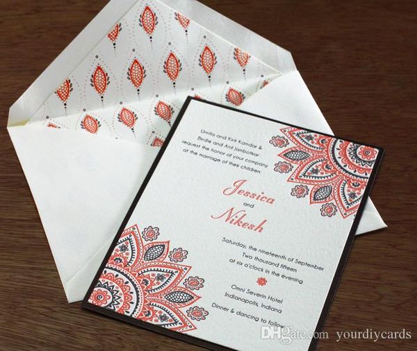 Indian Pattern Letterpress Wedding Invitations
