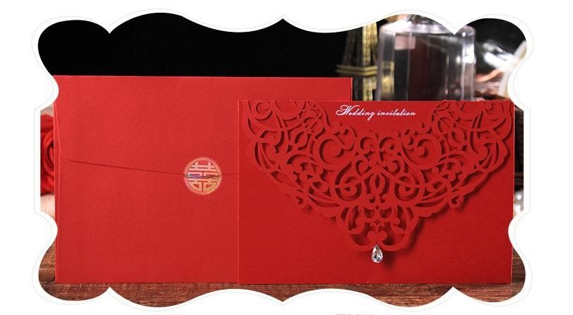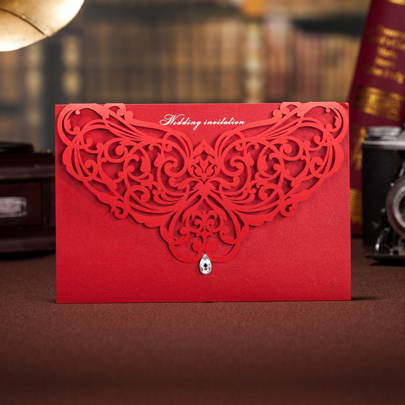 Red White Laser Cut Creative Wedding Invitation Cards Personalized Diamond Wedding Party Printable Invitation Cards With Envelope Sealed Baptism