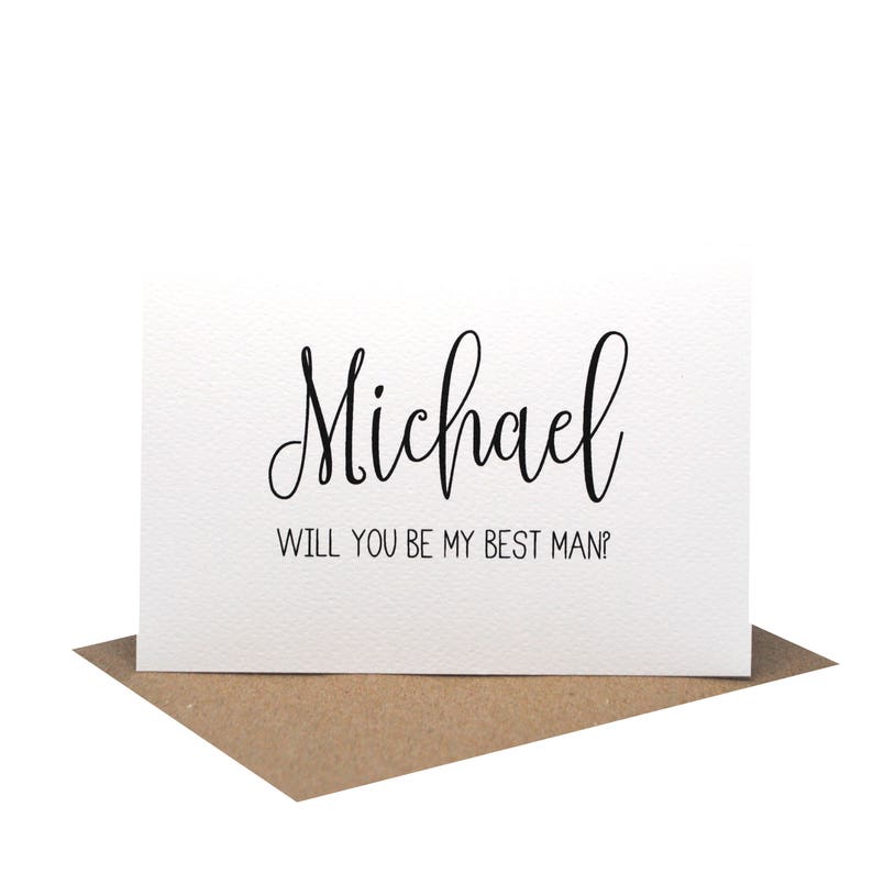 Personalised Best Man Card Wedding Card Black Script Writing Wed061 Will You Be My Best Man Card Wedding Personalised Card