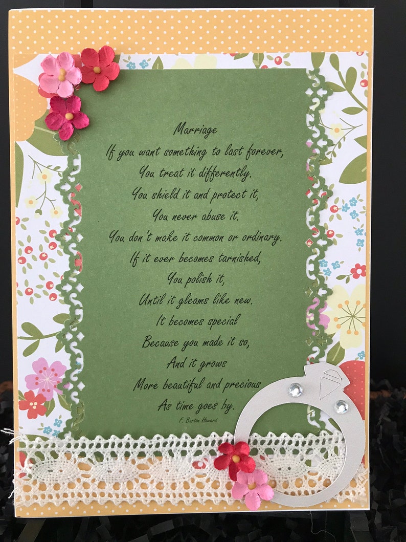 Handmade Wedding Card Marriage Congratulations Best Wishes Poem Floral Wedding Ring Silk Flowers Poetry Forever Lifetime Happiness
